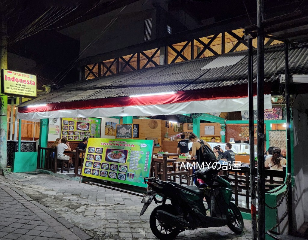 20時00分ごろホテルにチェックインした後で訪れた「Warung Indonesia(ワルン インドネシア)」。ホテルから歩いて15分ぐらいのところで、夜も23時00分まで営業しているので、ありがたかったです。日本人の方がオーナーさんなのだとか。
