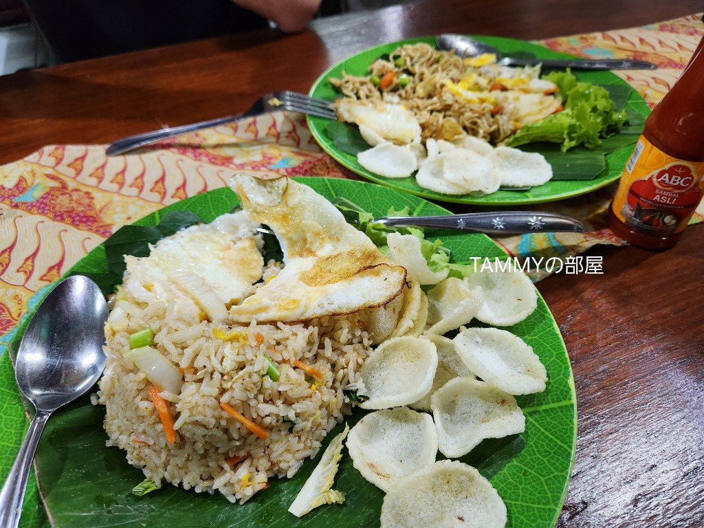 バリ島到着後1食目のご飯として、ナシゴレンとミーゴレンをいただきました。