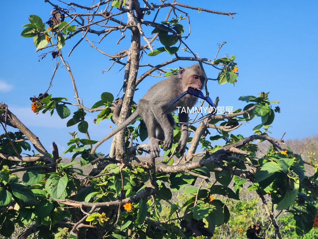 寺院の敷地内にはサル(カニクイザル)がたくさんいるのですが、近くに現れたら手持ちの小物類(スマートフォン、サングラスやカメラなど)には十分ご注意ください。盗られます。現にTAMMYたちの目の前で、旅行者がサングラスを奪われていました。(聞くところによると、サルに物を盗られたときは寺院の方に報告すると、バナナと引き換えにサルから(無傷かどうかは運次第ですが)取り返してもらえるそうです。)