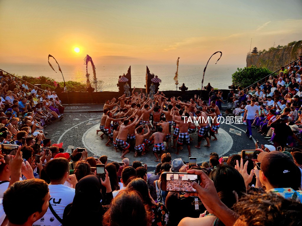 バリ島古来の舞踊をベースに20世紀前半に発展し、世界遺産にも登録されているバリ島の伝統舞踊「ケチャダンス」。古代インドの叙事詩「ラーマーヤナ」を、男性の声だけで表現します。TAMMYたちは、ラーマーヤナのあらすじが書かれた紙をもらえたので(日本語)、上演中も困ることはありませんでした。