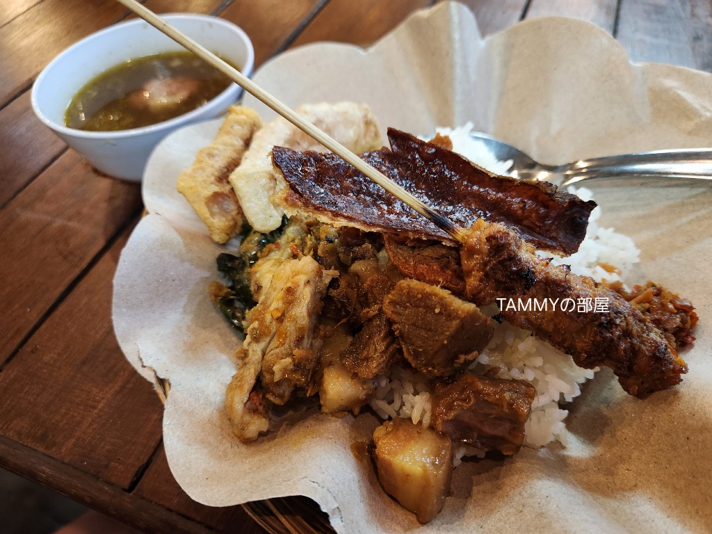 好きなおかずをワンプレートに盛り付ける、ナシチャンプルの専門店「Warung Nikmat(ワルン ニクマット)」は、ローカルにも観光客にも人気のお店だそうです。